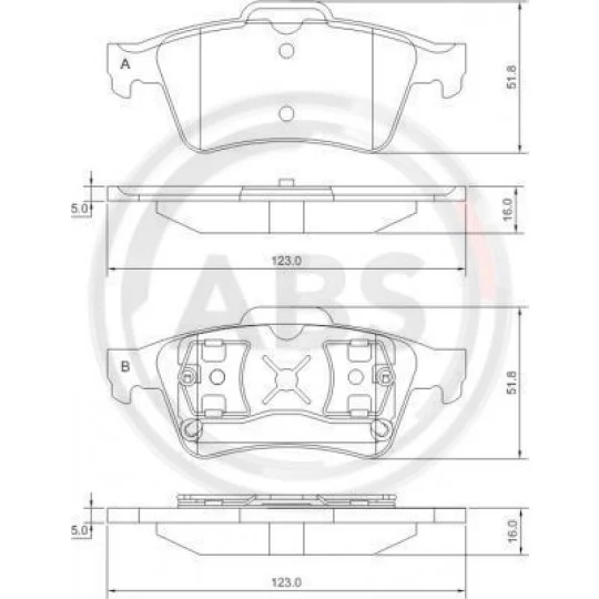 The A.B.S. 37216 brake pad set is specifically designed for the rear axle of compatible vehicles. With precise dimensions—Width: 123.1 mm, Height: 52 mm, Thickness: 16.5 mm—these brake pads ensure perfect alignment and smooth operation with your vehicle's braking system. Manufactured for ATE brake systems, they offer seamless compatibility where ATE specifications are required, guaranteeing dependable braking under diverse driving conditions.